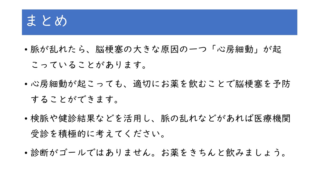 講演1:脈が乱れたら・・・脳卒中の前兆?